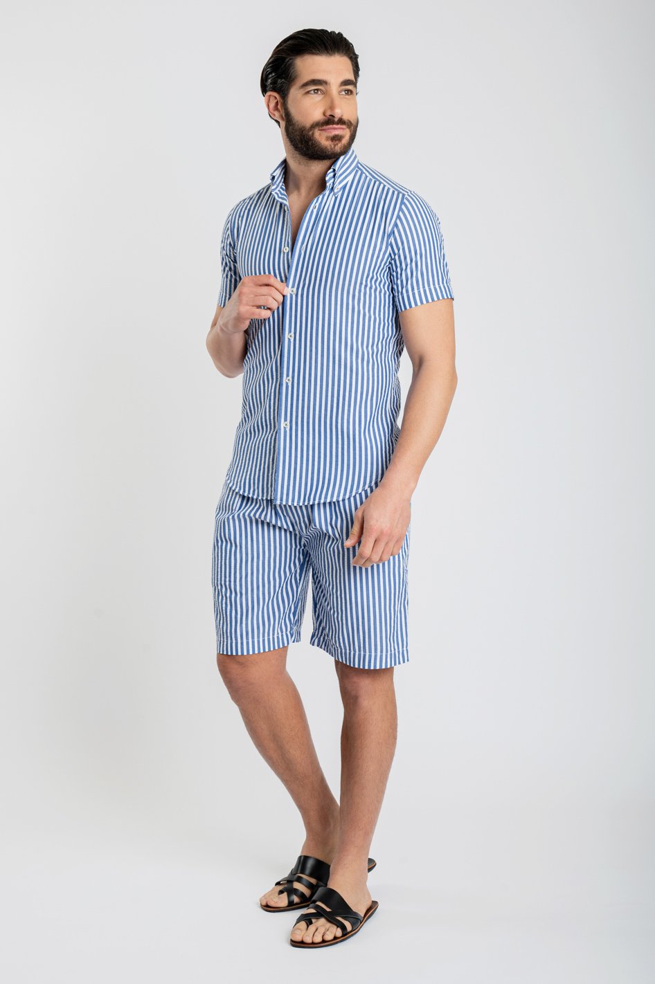 This set conveys a sense of summer freedom and simplicity. The lightweight fabric ensures a comfortable fit, while the vertical stripes create a clean and balanced look. Suitable for holidays, evening walks, or relaxed outings, it combines practicality with style in any setting.